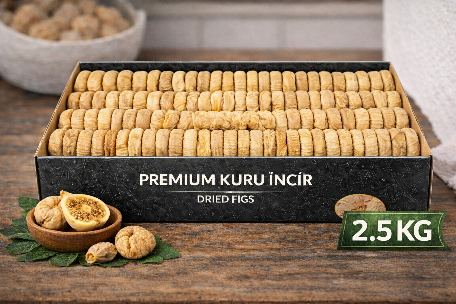 Dalında doğal olarak kurumuş, Sıralı Dizilmiş sarı ballı aromaya sahip, katkı ve koruyucu içermeyen premium kuru incir.